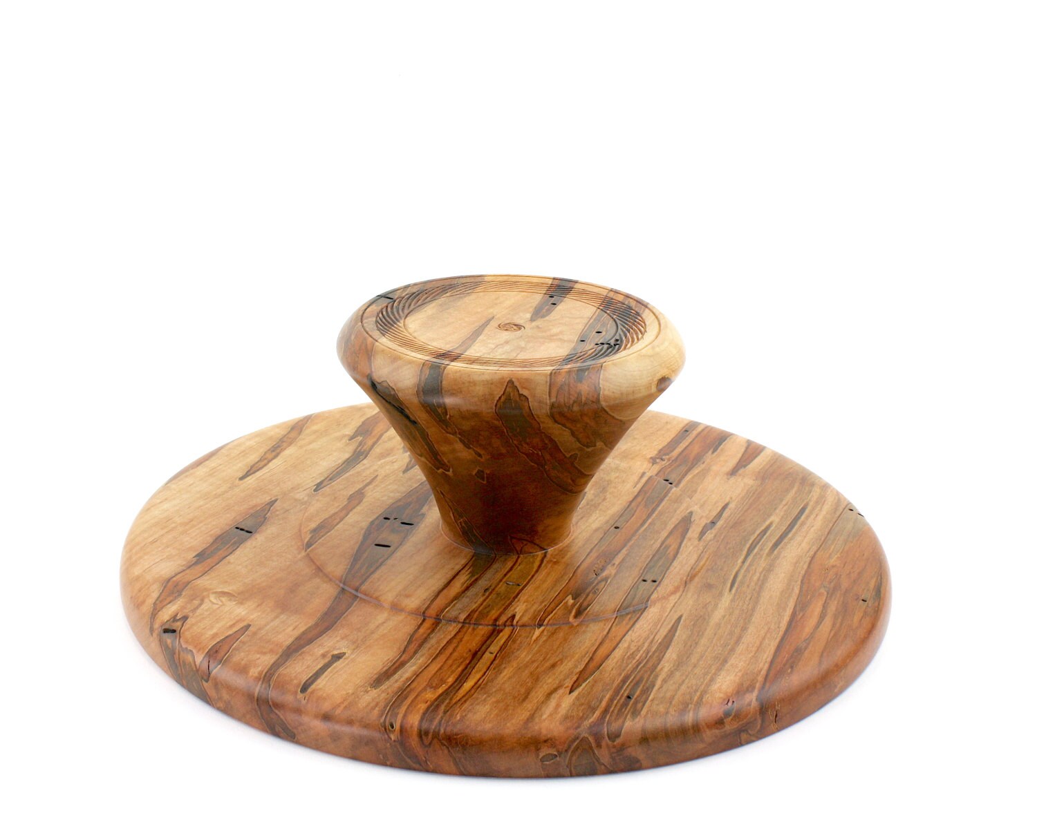 Our new modern cake stand, with sleeker, straighter lines. This cake stand has tiny little wormholes, which is caused by the infestation of ambrosia beetle, that cause the beautiful streaks in the wood. Unique and one-of-a-kind cake stand is special made to enhance any cake or dessert for generations to come. Would make a great gift for the foodie or baker in your life. Made entirely of salvage or down trees. None are exactly the same, and any slight imperfections are an affect of the handmade quality.