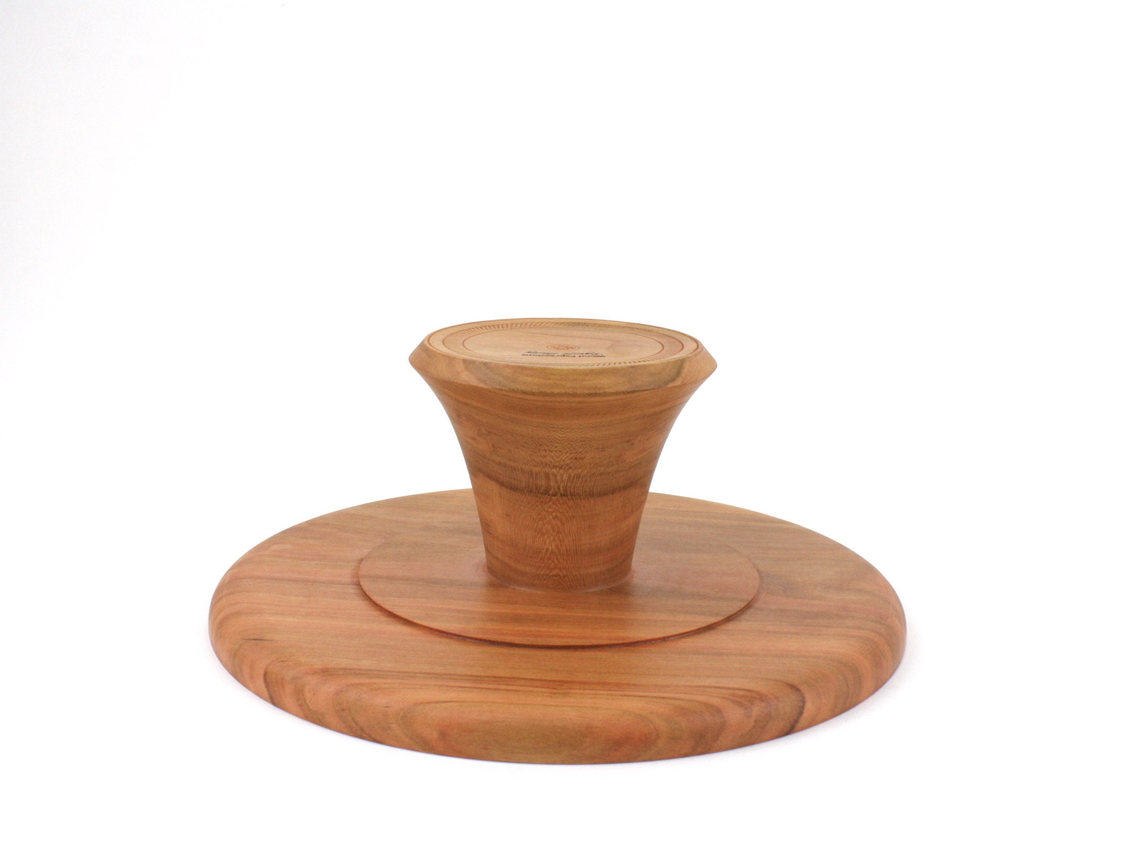 THIS STAND IS HAND TURNED ON A WOOD LATHE, FROM ONE PIECE OF WOOD, NO GLUE OR SCREWS.