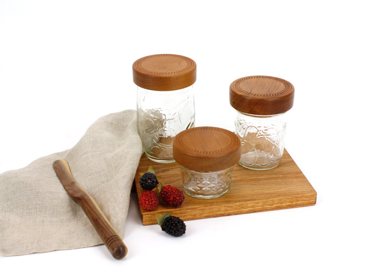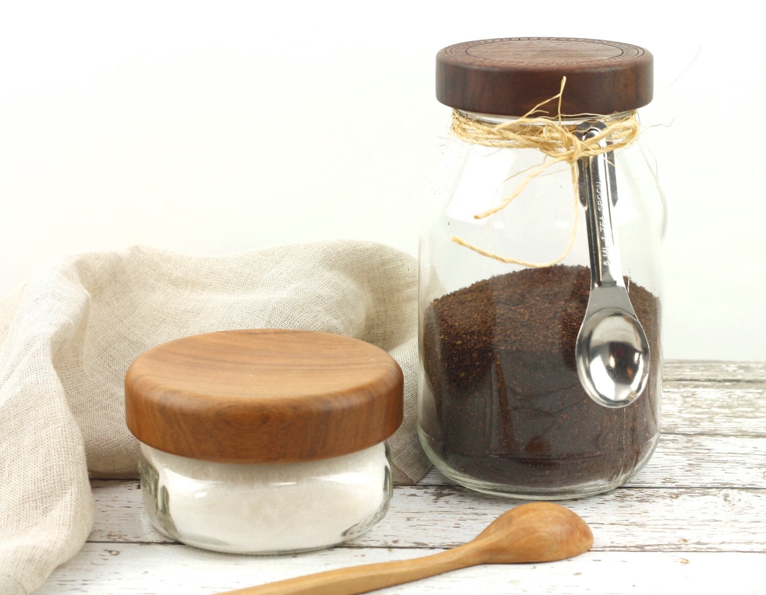 This listing is for Two wooden Mason jar lids. ** The glass jars are not included in this sell *** They are finished with orange oil, Natural Beeswax and buffed.