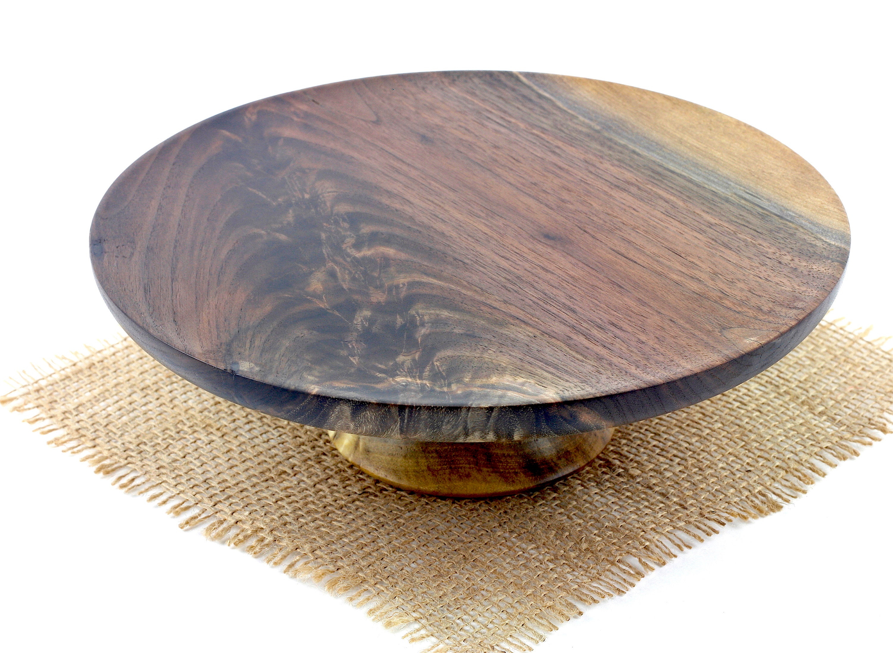 This listing is for one walnut cake stand. Our cake stands are made from solid hard woods, NO stain or paint is used, all wood is left in its natural form. This unique and one-of-a-kind cake stand is special made to enhance any cake or dessert for generations to come. Would make a great gift for the foodie or baker in your life. Made entirely of salvage or down trees. No two are exactly the same, and any slight imperfections are an affect of the handmade quality.