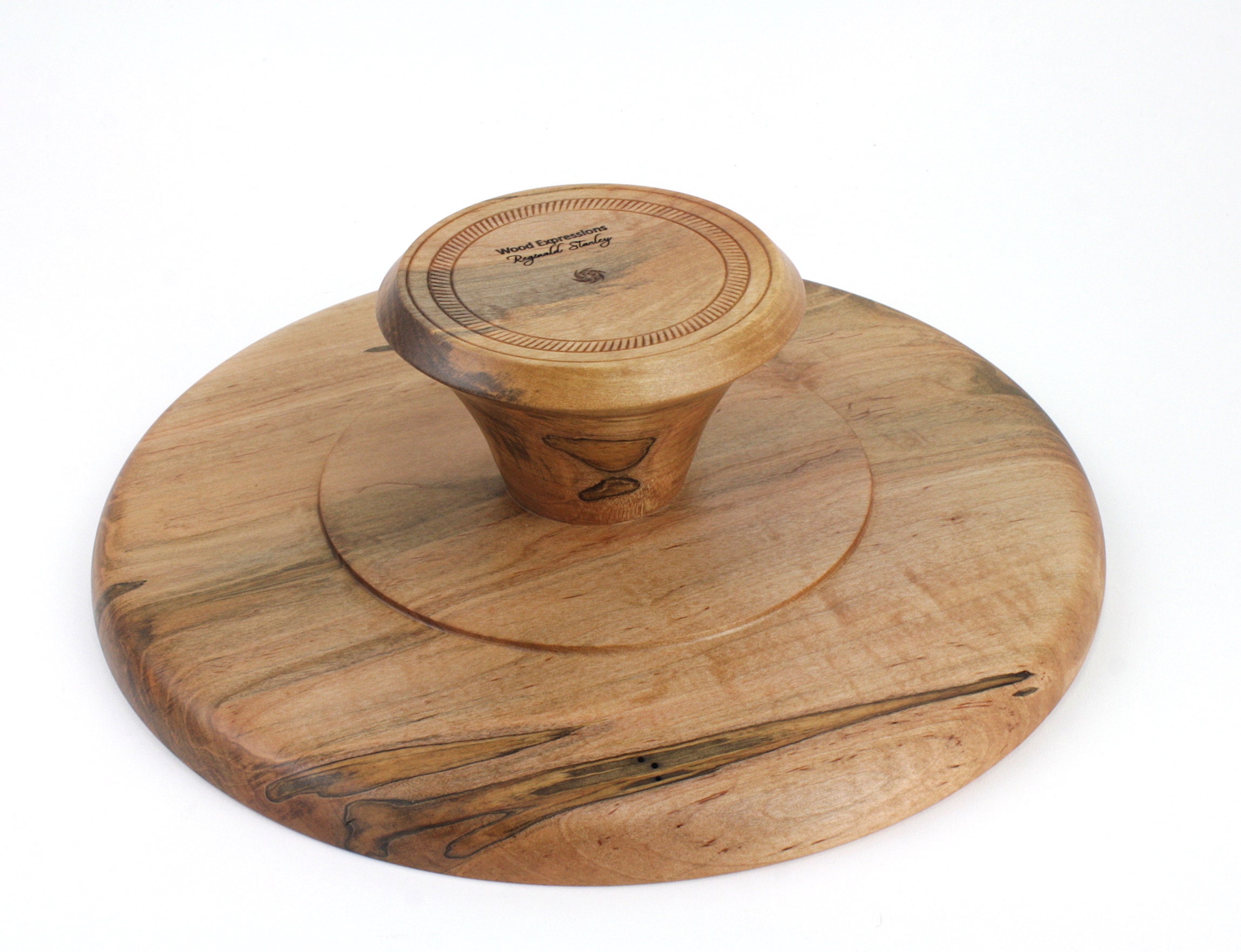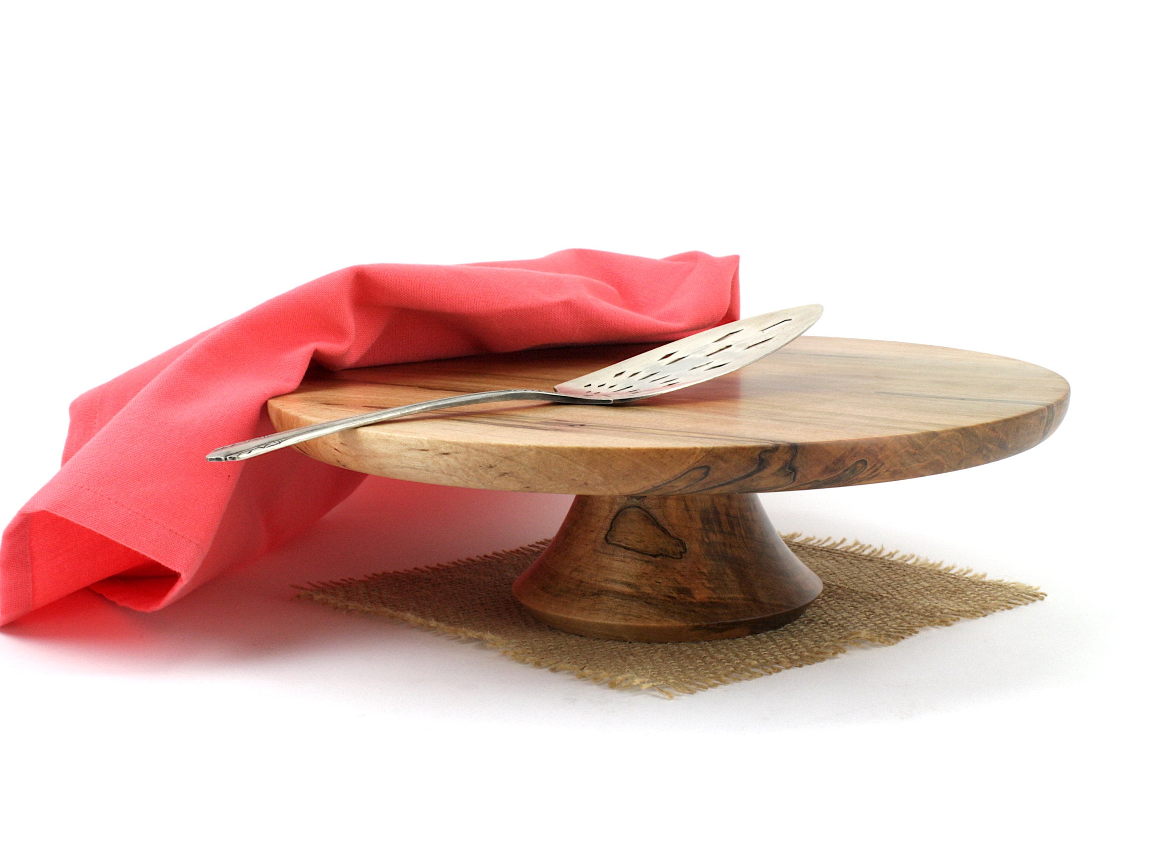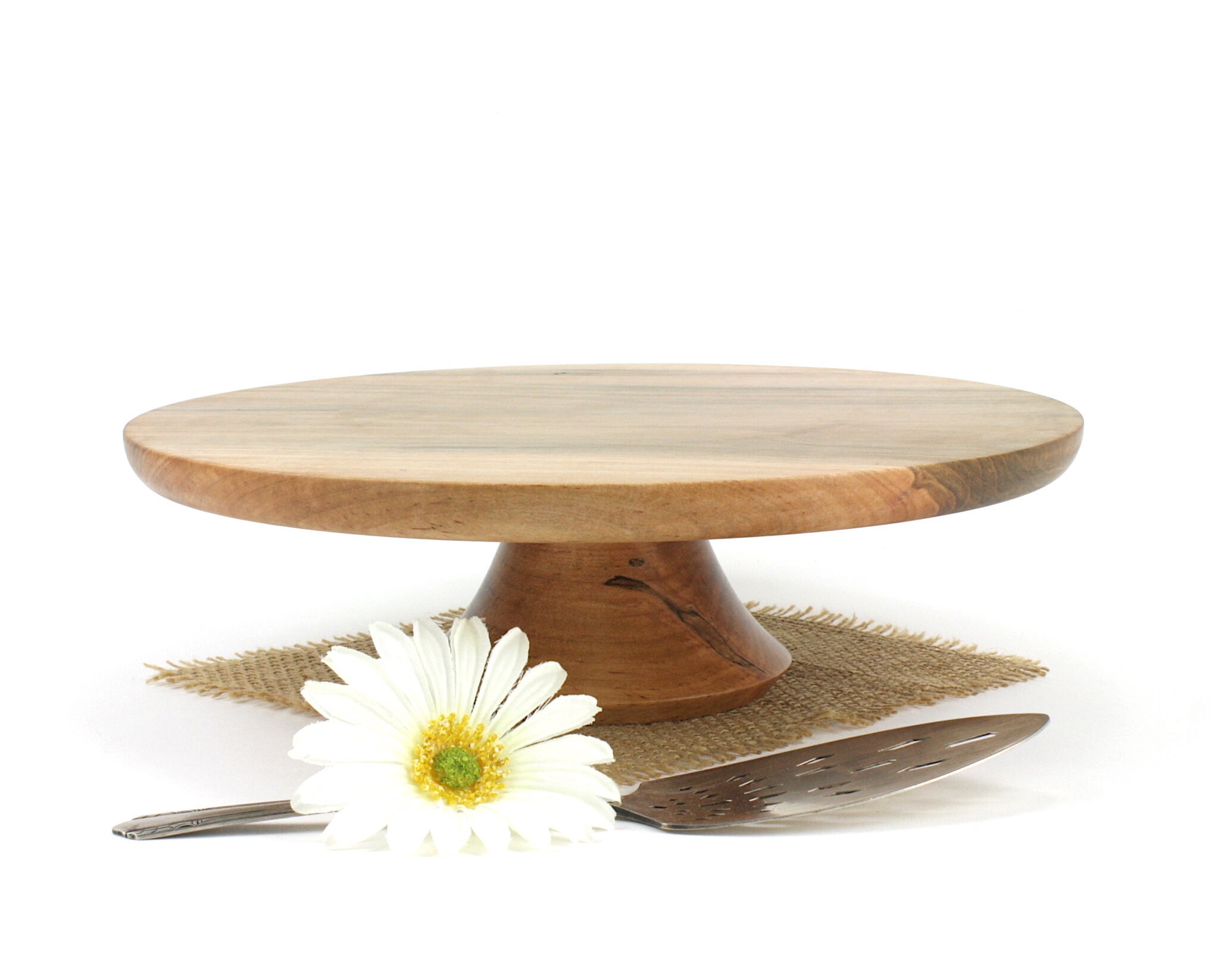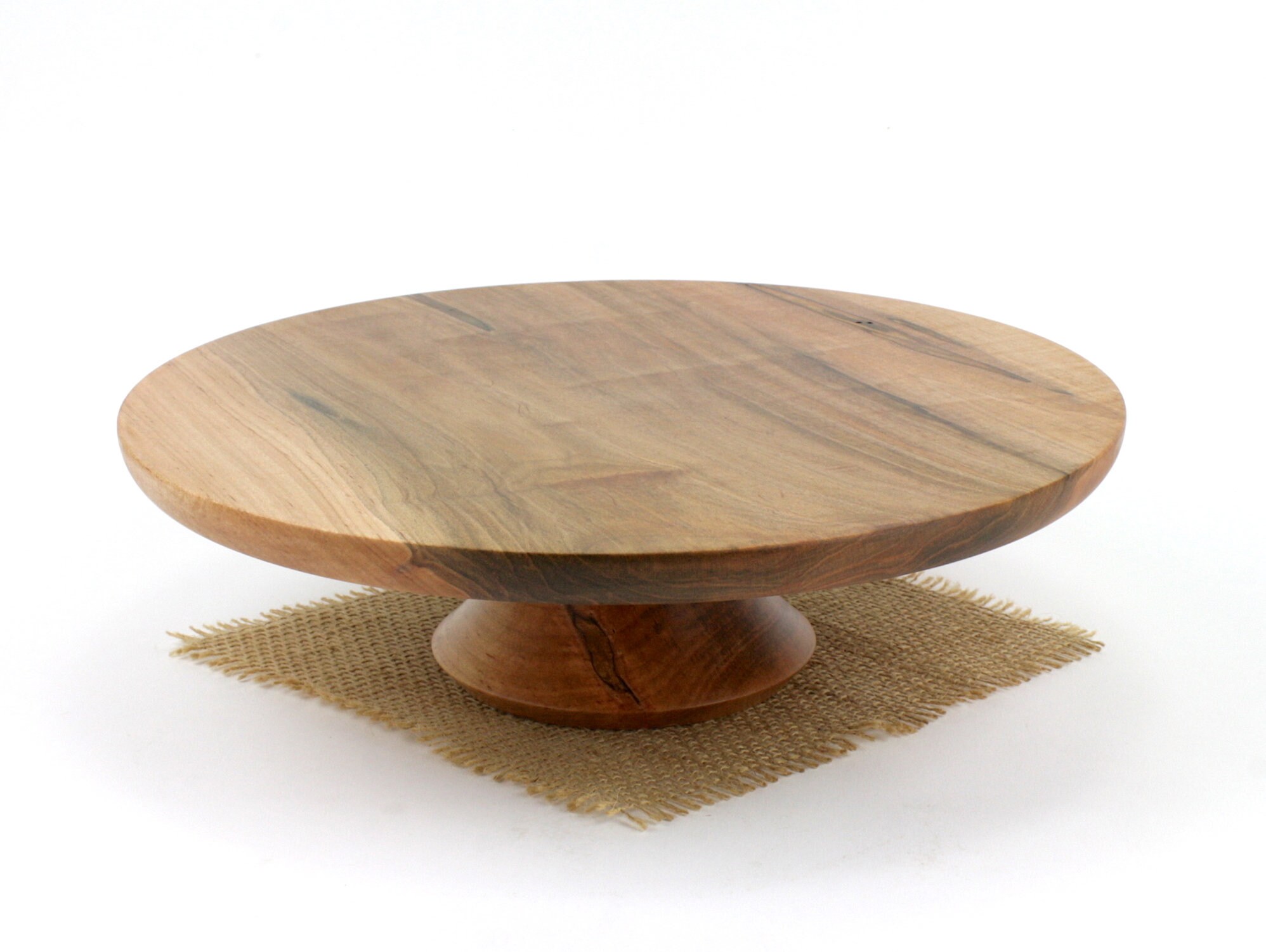 Our new modern cake stand, with sleeker, straighter lines. This cake stand has a few tiny little wormholes on the top, which is caused by the infestation of ambrosia beetle, that create the beautiful streaks in the wood. Unique and one-of-a-kind cake stand is special made to enhance any cake or dessert for generations to come. Would make a great gift for the foodie or baker in your life. Made entirely of salvage or down trees. None are exactly the same, and any slight imperfections are an affect of the handmade quality.