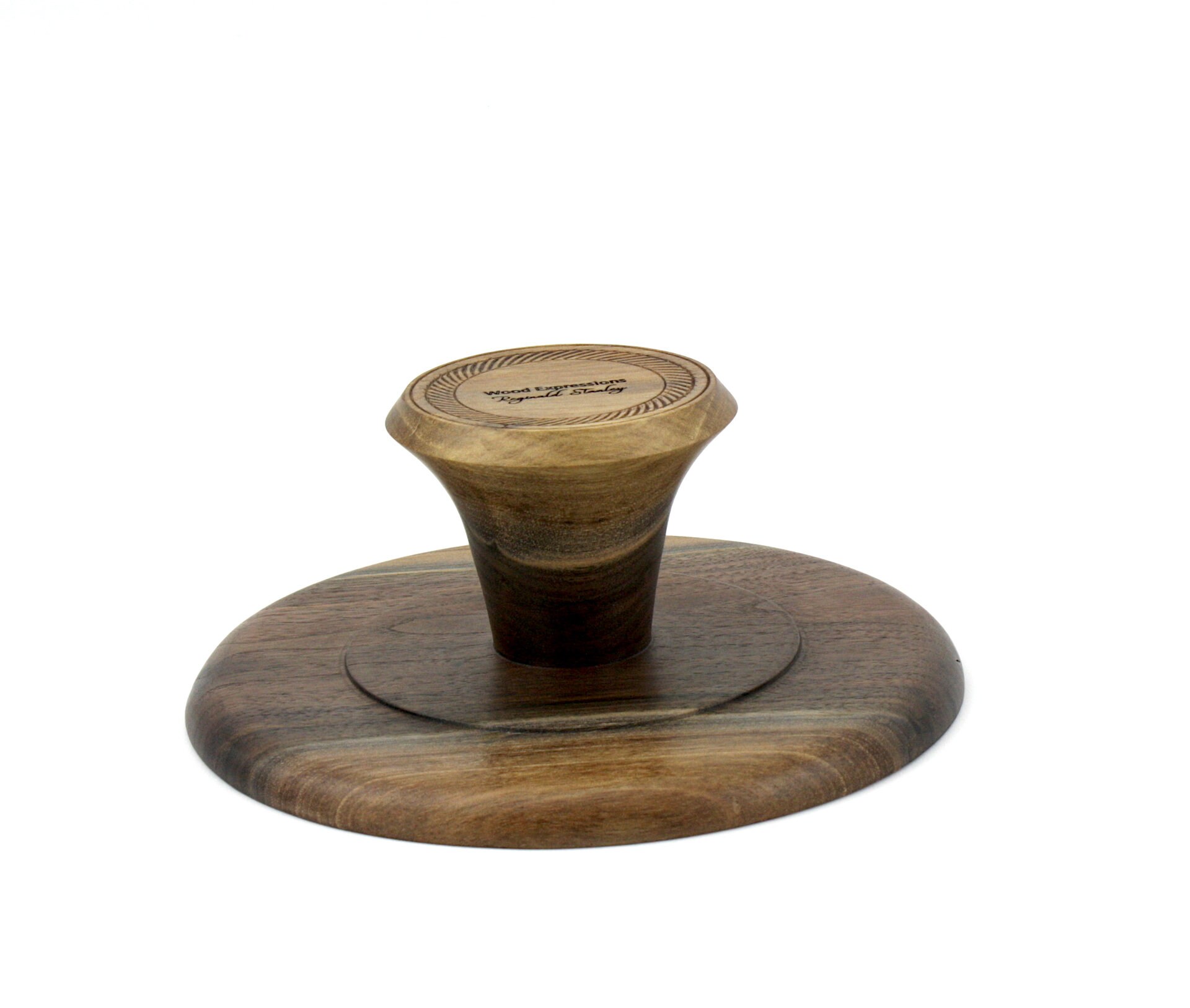 This listing is for one 7 7/8” black walnut cake stand. Our cake stands are made from solid hard woods, NO stain or paint is used, all wood is left in its natural form. This unique and one-of-a-kind cake stand is special made to enhance any cake or dessert for generations to come. Would make a great gift for the foodie or baker in your life. Made entirely of salvage or down trees. No two are exactly the same, and any slight imperfections are an affect of the handmade quality.